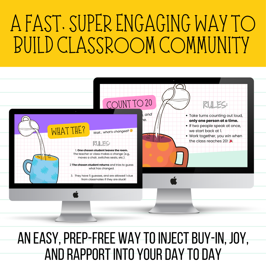 Cup Fillers is a clickable PowerPoint with 20 whole-class community-building games and activities designed to strengthen relationships, lift energy, and build student belonging and felt safety.