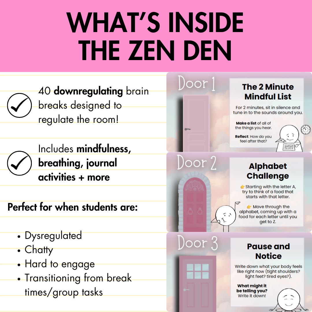 The Zen Den (downregulating tasks for calming, grounding, and settling busy minds and bodies)